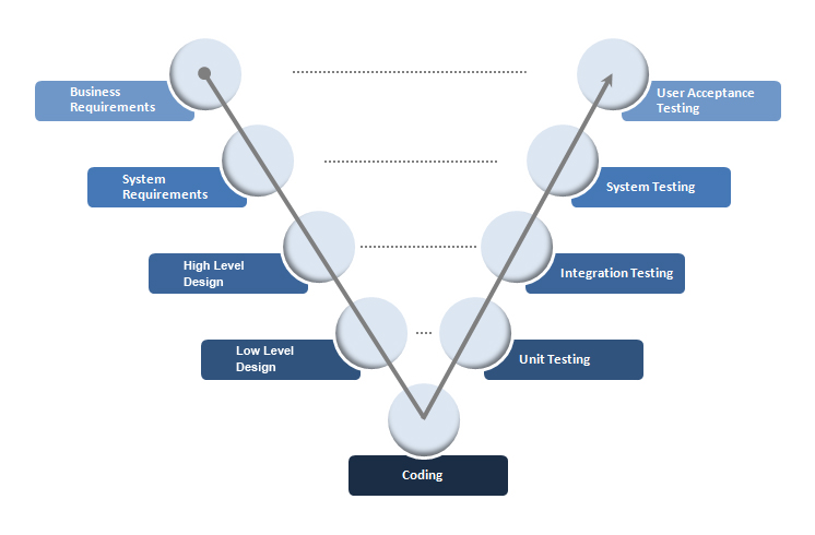 V-modelin yazılımın geliştirme aşamalarının tanımlanma şekline göre birçok gösterilimi vardır. Her aşamanın kendi testiyle eşleştirilmesi asıl önemli olandır.